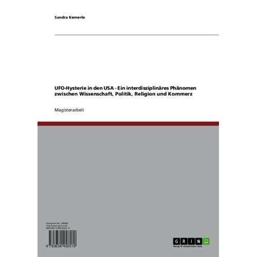 Magisterarbeit aus dem Jahr 2005 im Fachbereich Amerikanistik - Kultur und Landeskunde, Note: 2,2, Universität Leipzig (Institut für Amerikanistik), 184 Quellen im Literaturverzeichnis, Sprache: Deutsch, Abstract: Jeder wird schon einmal von einem UFO oder Außerirdischen gehört haben. E.T., Alien und Alf sind wohl die bekanntesten Film-Außerirdischen ihrer Art. Dennoch verbirgt sich hinter dieser weltbekannten, aber ebenso sehr komplexen Thematik ein weitaus größeres Phänomen, welches in der vorliegenden Magisterarbeit ausgearbeitet wurde. Die ist eine Betrachtung unterschiedlicher interdisziplinärer Phänomene - die Ufo-Thematik zwischen Wissenschaft, Politik, Religion und Kommerz.Format=Kindle Edition. Dateigröße=873 KB. Seitenzahl der Print-Ausgabe=284 Seiten. Verlag=GRIN Verlag; Auflage: 1 (7. Januar 2006). Verkauf durch=Amazon Media EU S.à r.l.. Sprache=Deutsch. ASIN=B007GYB2A0. Text-to-Speech (Vorlesemodus)=Aktiviert. X-Ray=Nicht aktiviert. Word Wise=Nicht aktiviert. Screenreader=Unterstützt. Verbesserter Schriftsatz=Aktiviert. Durchschnittliche Kundenbewertung=Schreiben Sie die erste Bewertung. Amazon Bestseller-RangAnglistik & AmerikanistikAnglistik & AmerikanistikUS-amerikanische Literatur=#955.456 Bezahlt in Kindle-Shop (Siehe Top 100 Bezahlt in Kindle-Shop) .zg_hrsr { margin: 0; padding: 0; list-style-type: none; } .zg_hrsr_item { margin: 0 0 0 10px; } .zg_hrsr_rank { display: inline-block; width: 80px; text-align: right; } Nr. 67 in Kindle-Shop > eBooks > Fachbücher > Nr. 1117 in Bücher > Fachbücher > Nr. 1225 in Bücher > Literatur & Fiktion > Weltliteratur >. Ist der Verkauf dieses Produkts für Sie nicht akzeptabel=?.